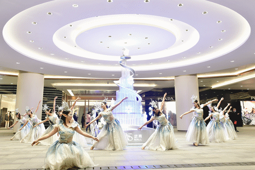 揭幕仪式后,武商集团领导及受邀嘉宾一行前往武商MALL·国广一楼中庭及连廊,欣赏由知音号艺术团带来的沉浸式歌舞剧。夜幕下的武商MALL流光溢彩、美轮美奂,知音号艺术团的演员们巧妙地将舞蹈、合唱与武商MALL·国广的圣诞景点相融合,为大家呈现一场极具观赏性的沉浸式视听盛宴,由此点亮圣诞季。