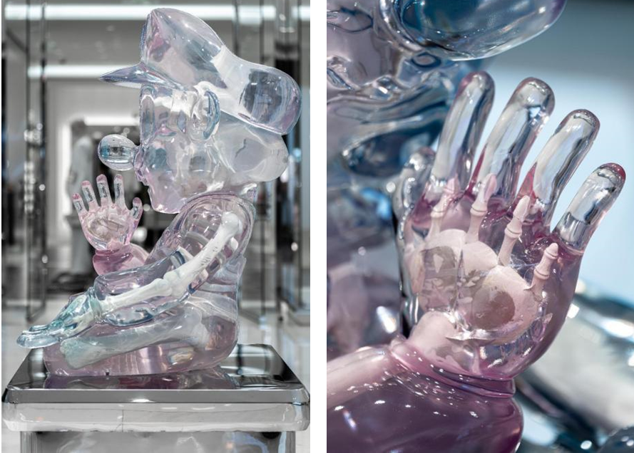 该装置由中国艺术家VANCE打造,延续武商MALL艺术装置“骨大可”的设计属性,用“万物皆可透明”的创作手法呈现“无众生相”玻璃雕塑艺术作品,以透明艺术语言开启超越传统意义的潮流艺术新旅程。