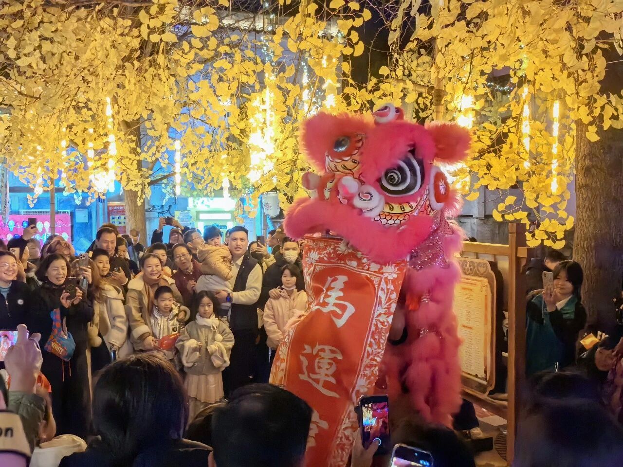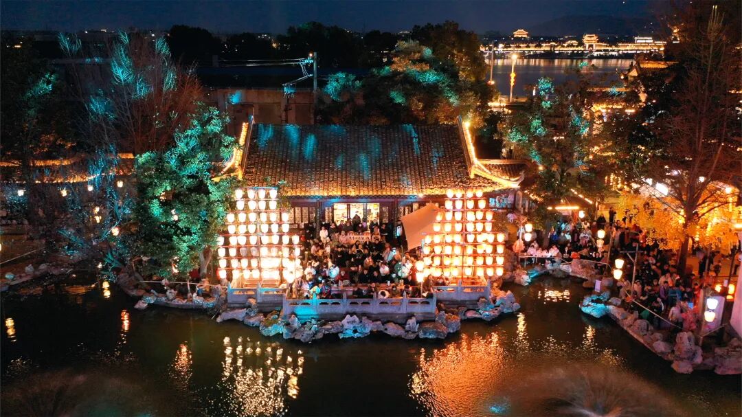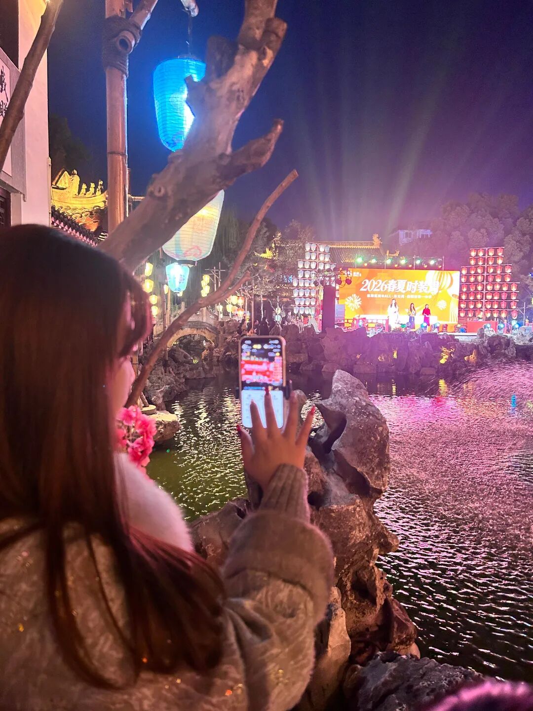 夜幕降临,米公祠内花灯溢彩、人潮涌动,襄阳武商MALL携朝峰、凤禧、纳薇等八大品牌呈现2026春夏新品大秀,模特穿行于灯影古建之间,步履翩然,衣香如诗。宋韵大鼓气势雄浑,《研山铭》古筝清雅悠远,变脸相声妙趣横生,汉服巡游如画中行,传统与潮流轮番登台,整场演出层层递进,将节日氛围不断推向高潮。