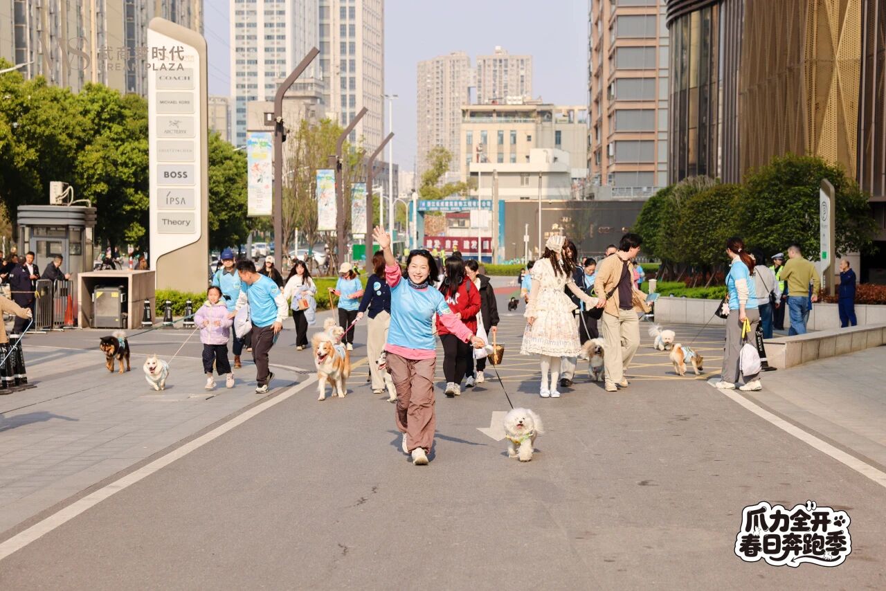 春风送暖,万象更新,第四届城市路跑大赛暨“萌宠爪爪跑”在武商梦时代北广场活力开跑。